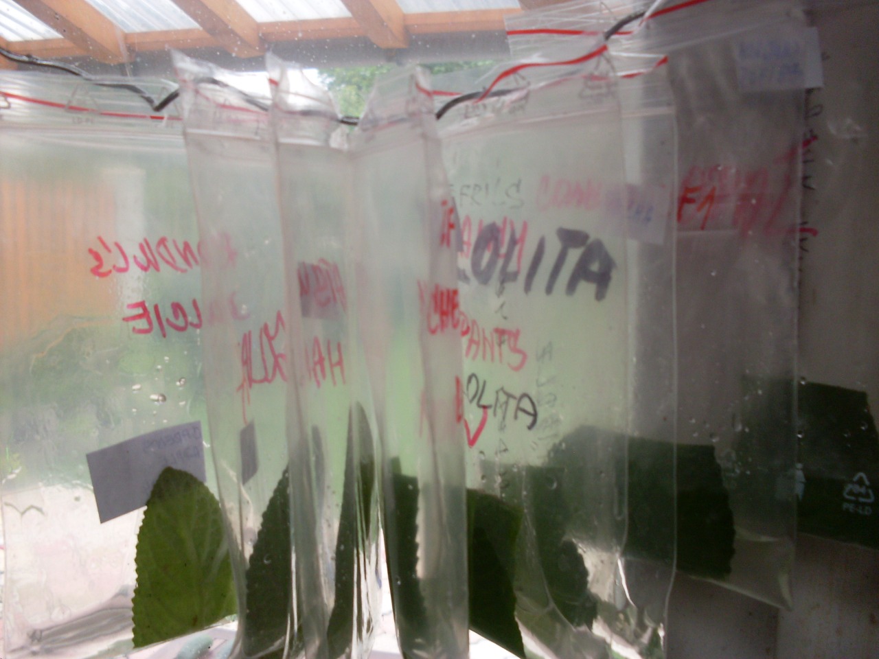 Takto ošetřené, zakryjte igelitovým sáčkem nebo vložte do miniskleníčku pro dosažení vyšší vlhkosti, která je pro kořenění důležitá. Umístěte na teplé a světlé místo a nezapomínejte pravidelně větrat, předejdete tak tvorbě plísní a zahnívání listů. Kořenění trvá cca 2-5 týdnů a po dalších 6-8 týdnech se začnou objevovat drobné rostlinky, které zprvu připomínají myší ouška.